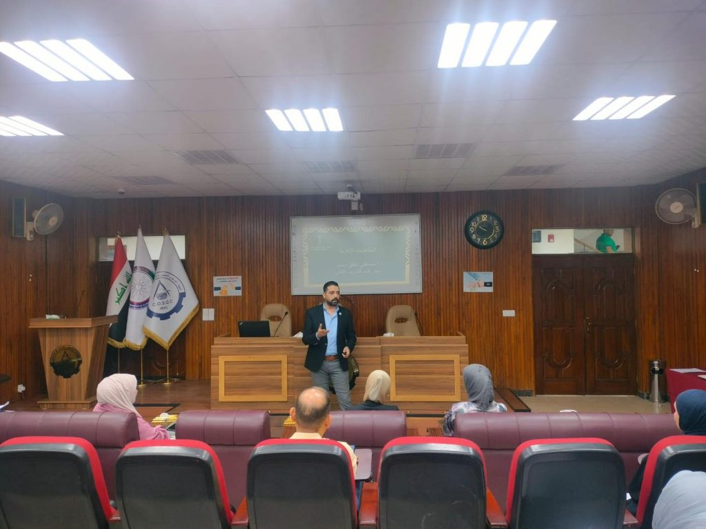 أقام المركز الوطني للتطوير الإداري وتقنية المعلومات دورة تدريبية بعنوان “المخاطبات الإدارية” لمجموعة من منتسبي الجهاز المركزي للتقييس والسيطرة النوعية في وزارة التخطيط، وذلك للفترة من 26 إلى 30 تشرين الأول 2025، ضمن البرامج التدريبية خارج الخطة التي ينفذها المركز استجابة لاحتياجات تشكيلات الوزارة.