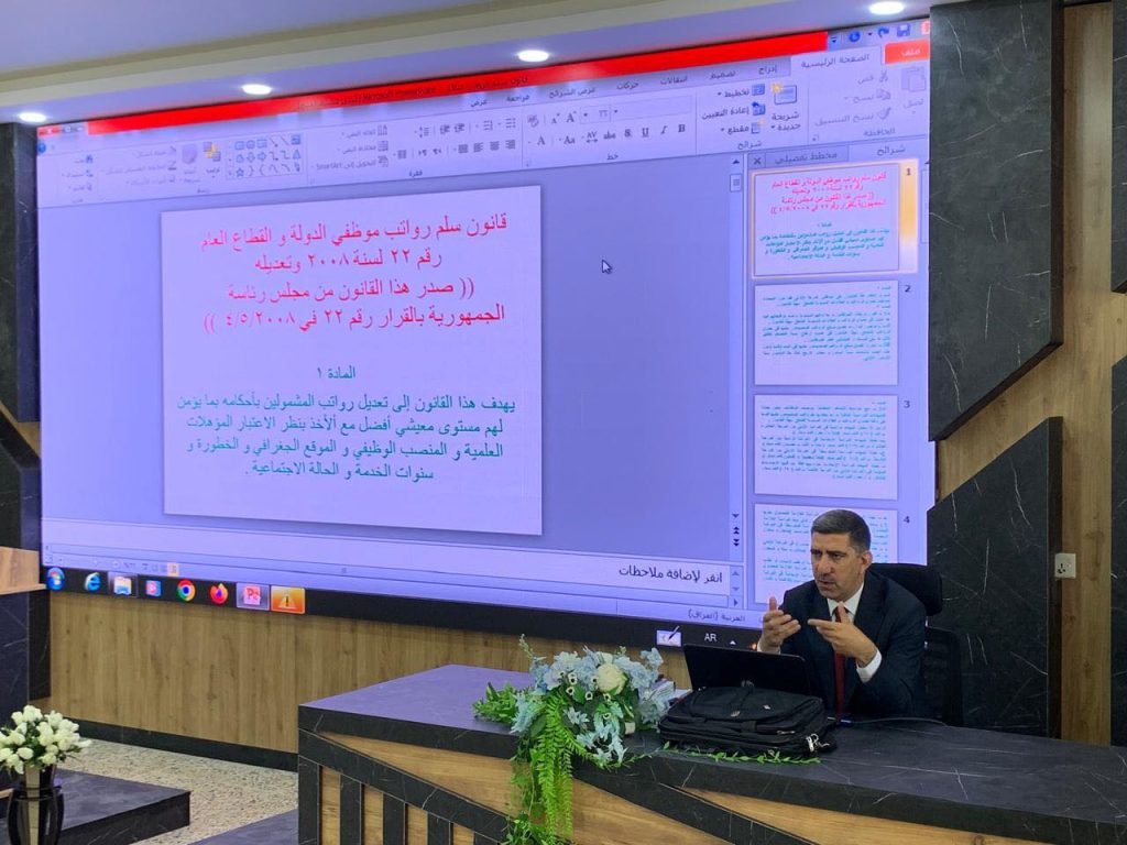 وأكد المهندس ياسر عادل رؤوف أن هذه الورشة تأتي في إطار الارتقاء بتطبيق قانون سلم رواتب موظفي الخدمة المدنية، مشيراً إلى أن المديرية مستمرة في تنظيم الدورات التدريبية لموظفي دوائر الدولة كافة في محافظة نينوى، بما يسهم في رفع كفاءتهم الإدارية والفنية.